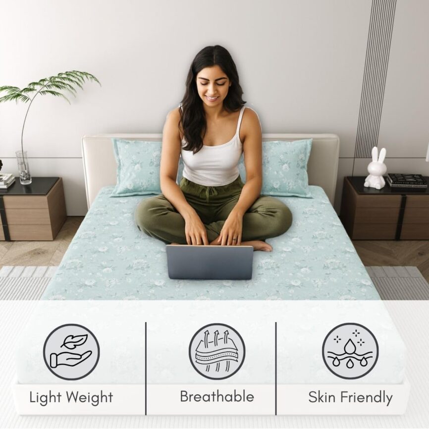 • SET CONTENTS: Pack of 2 single bedsheets measuring 90×60 inches each, perfect for regular home use and hostels